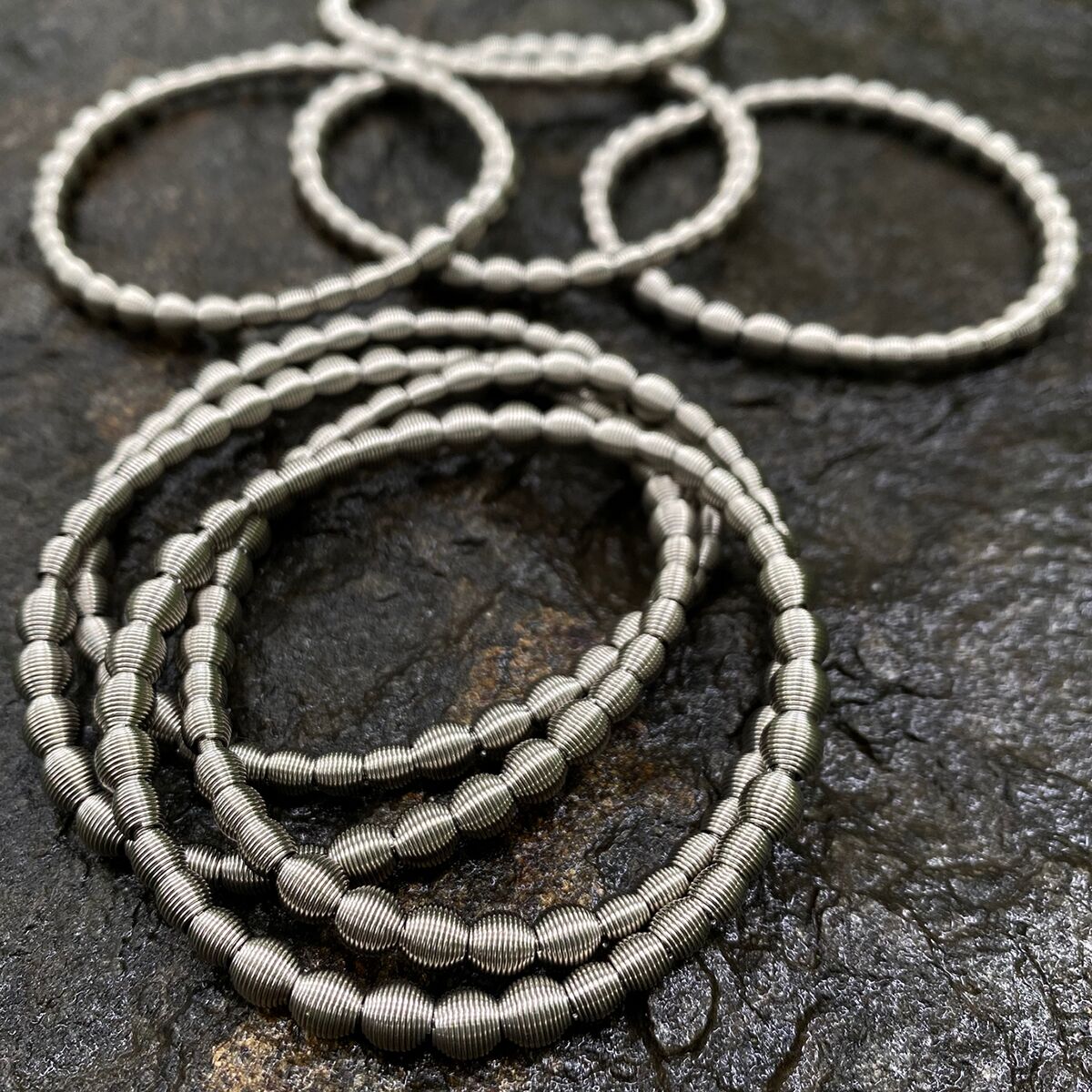 Designerin: Tiziana Redavid, italienische Architektin & Industriedesignerin. Seit 1997 kreiert Sie die Schmuckstücke durch Wiederverwendung industrieller Edelstahlfedern aus Turin. Zusammen mit einem kleinen Team werden die Stücke in Italien und Frankreich gefertigt