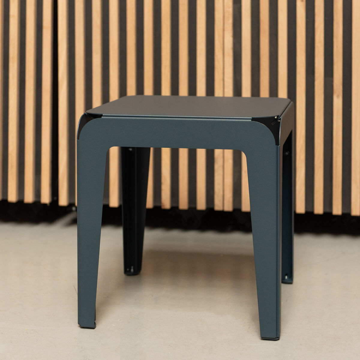 Gefertigt aus recycelbarem Aluminium und pulverbeschichtet für zuverlässigen Witterungsschutz, punktet der Bended Stool mit seinem geringen Gewicht und einer Konstruktion, die sich clever an unebene Böden anpasst. Die markanten 45-Grad-Biegungen der Aluminiumteile verleihen ihm nicht nur seine stabile Struktur, sondern auch seine klare, moderne Ästhetik.