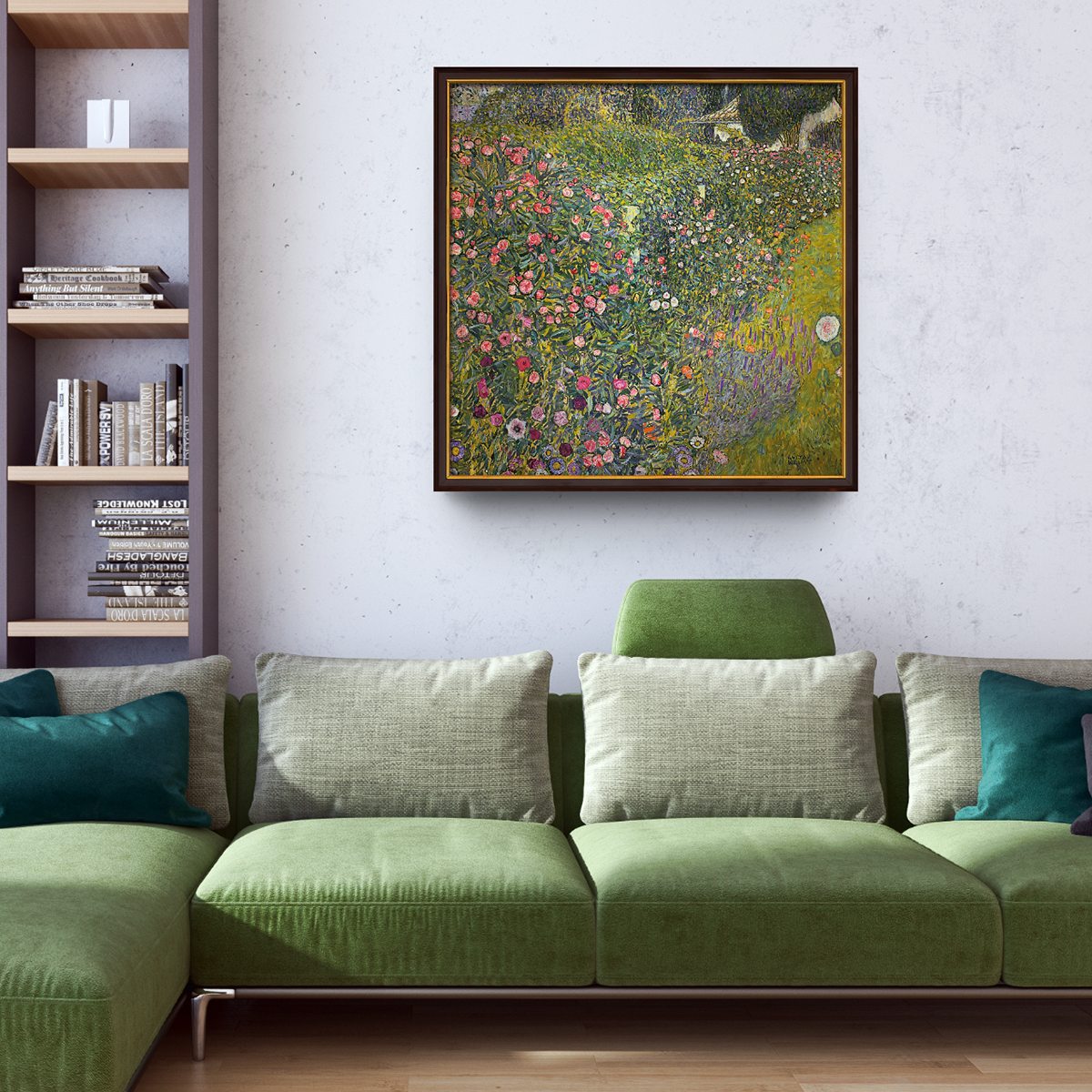 Die üppige Gartenlandschaft symbolisiert das Leben, in dem die schönsten Blüten treiben. Die Originalvorlage aus dem Kunsthaus Zug wurde im Fine-Art-Giclée-Verfahren direkt auf Künstlerleinwand übertragen, um die Brillanz der Farben authentisch wiederzugeben. In diesem bild steht die prachtvoll blühende Gartenlandschaft für das Leben, an dessenunverhofften Stellen die schönsten Blüten treiben.