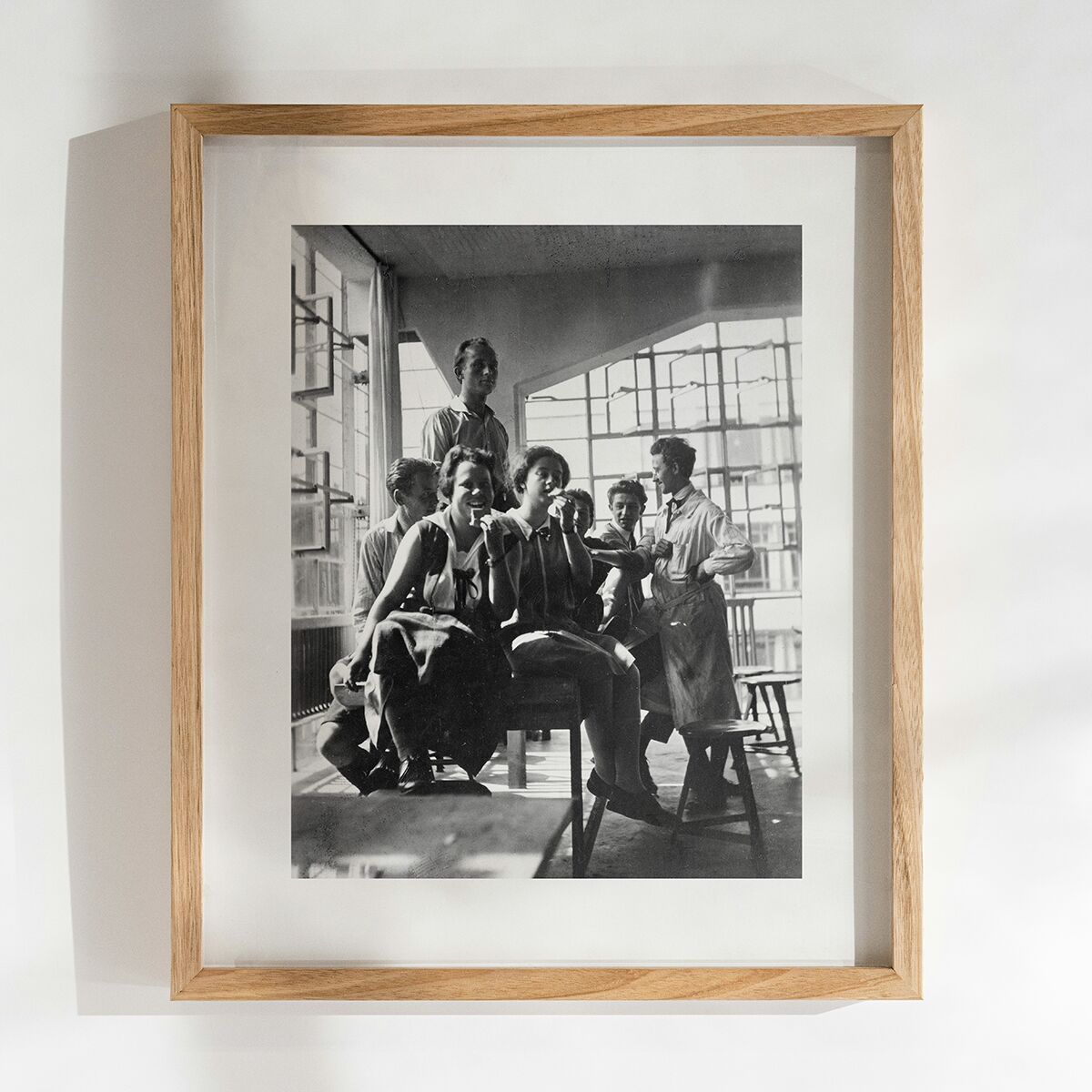 Tauchen Sie ein in die faszinierende Welt des Bauhauses mit diesem exklusiven Kunstdruck, der ein seltenes historisches Foto aus dem Jahr 1928 zeigt: Bauhäusler bei einer entspannten Frühstückspause – ein Moment, der die kreative Atmosphäre und den Gemeinschaftsgeist dieser legendären Bewegung authentisch widerspiegelt.