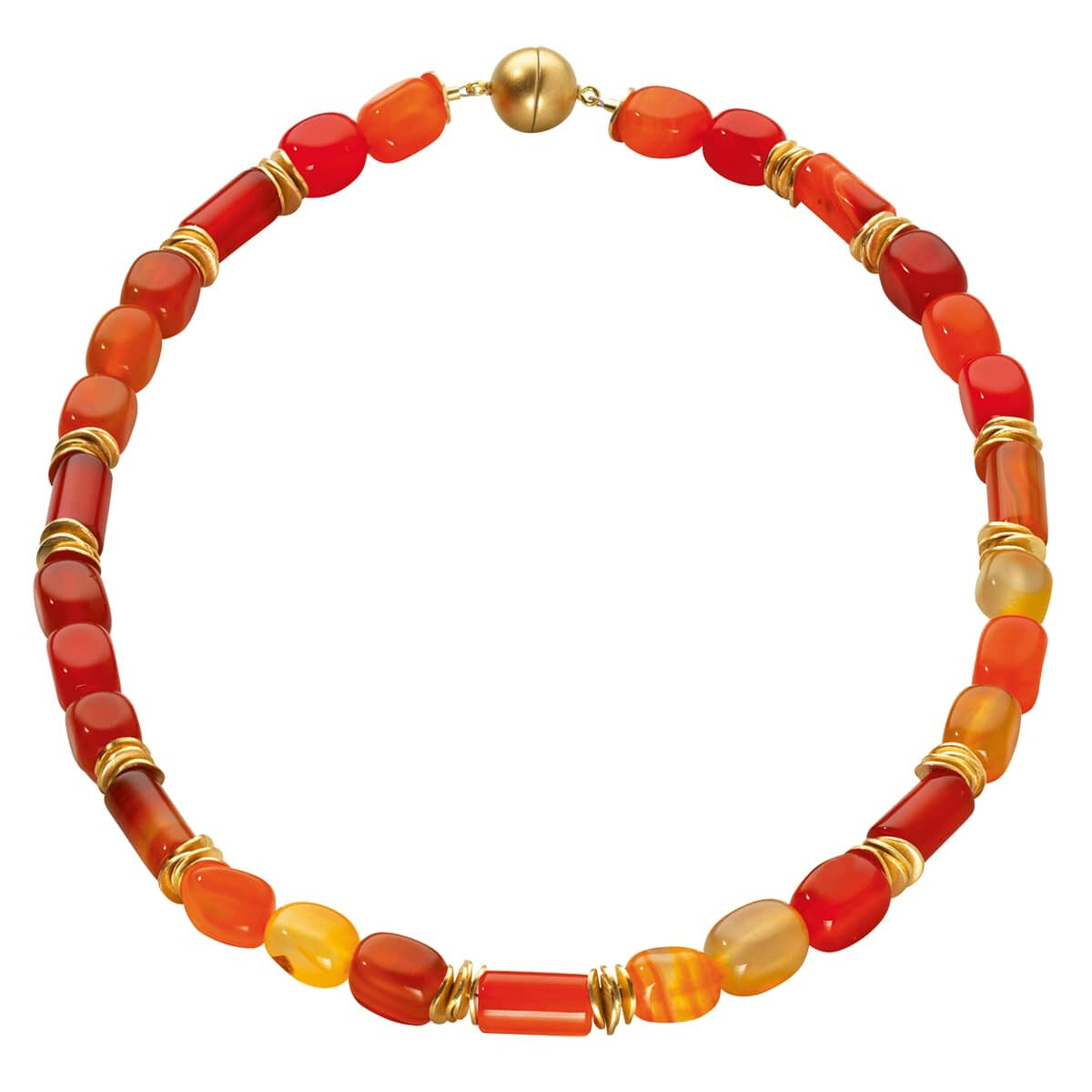 In den Farben der Sonne strahlend, versprüht dieses Schmuckset aus Achatperlen einen Hauch sommerlicher Leichtigkeit. Die vergoldeten Zwischenelemente runden den harmonischen und natürlichen Eindruck ab. Wahlweise als Schmuckset oder auch einzeln im Shop erhältlich.