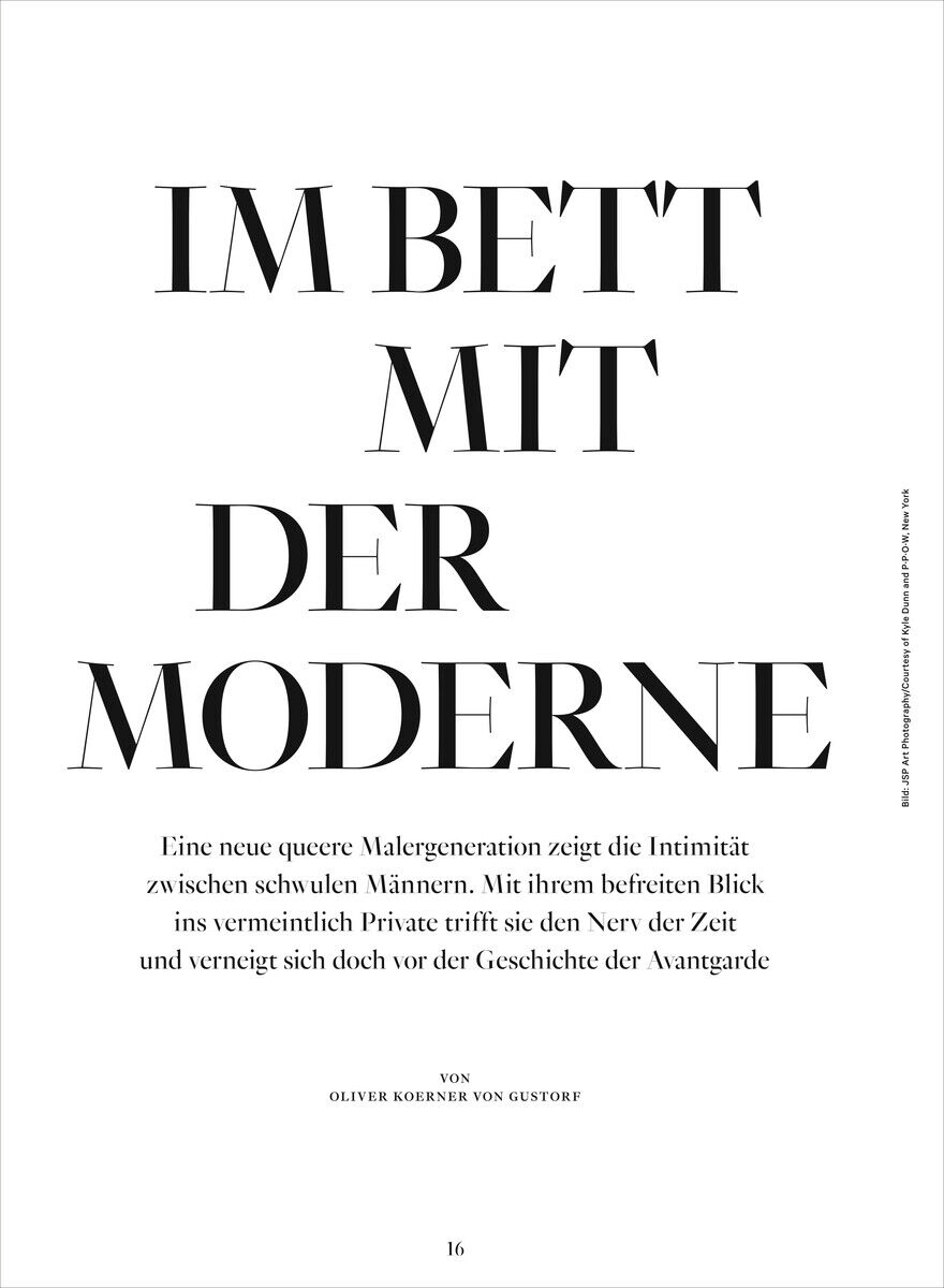 bei unseren vielen Besuchen von Galerien, Ateliers, Kunstmessen und Museen ist uns in jüngster Zeit ein starker Trend ins Auge gefallen, die queere Malerei, der wir unsere Titelgeschichte widmen.