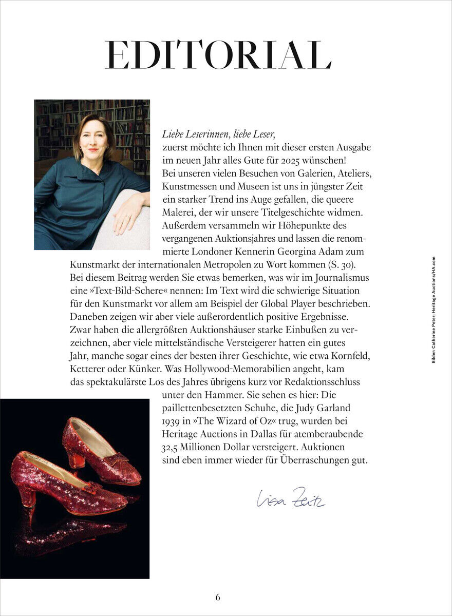 Außerdem versammeln wir Höhepunkte des vergangenen Auktionsjahres und lassen die renommierte Londoner Kennerin Georgina Adam zum Kunstmarkt der internationalen Metropolen zu Wort kommen.