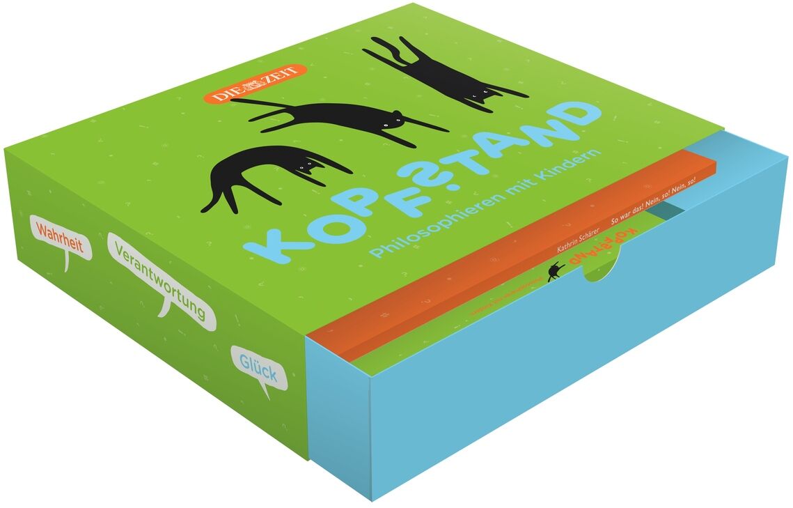 Die ZEIT-Edition »Kopfstand« lädt Kinder ab sechs Jahren zu philosophischen Überlegungen ein: Sechs sorgfältig ausgewählte Bilderbücher bilden den Ausgangspunkt und erzählen Geschichten über Glück, Wahrheit und Verantwortung. Mit den drei eigens dazu entwickelten Mitmach-Heften kommen die Kinder dann ins praktische Philosophieren: Lustige Wortspiele, Gedankenexperimente und kreative Bastelvorschläge regen zum Nachdenken und Nachfragen an. Dabei entstehen wie von selbst interessante Einsichten und ganz besondere Gespräche zu den vermeintlich abstrakten großen Themen.