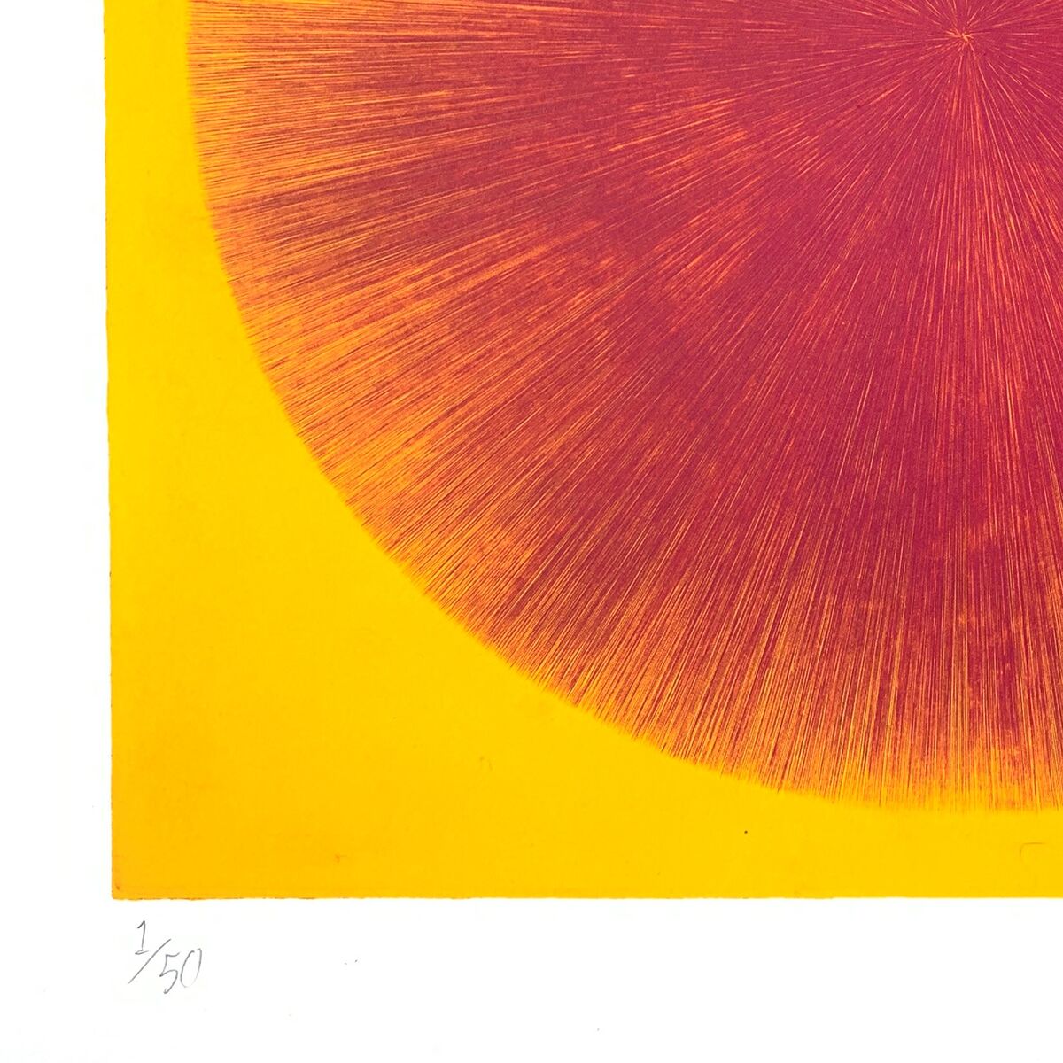 ZEIT-Sonderedition »Spiky Circle (Warmes Pink auf Gelb, 65x65cm)« Kupferstich, 2025