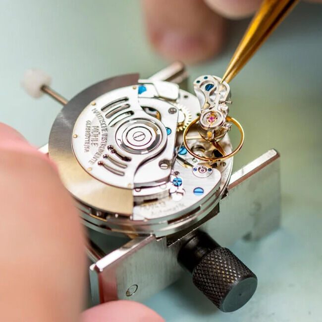 In der exklusiven ZEIT-Sonderedition »Panova Grau« von Mühle Glashütte kommt ein zuverlässiges SW 200-1 Automatikuhrwerk, Version Mühle zum Einsatz. Bei diesem Automatik-Uhrwerk handelt es sich um ein bewährtes Uhrwerk eines Schweizer Herstellers, das bei Mühle-Glashütte hinsichtlich Präzision, Robustheit und Ästhetik stark modifiziert wird. Das Werk wird vollständig zerlegt, überprüft, mit hochwertigen Schliffen versehen und neu montiert. Eigene Bauteile wie die stoßsichere Spechthalsregulierung und der Mühle-Rotor optimieren die Leistung. Abschließend wird das Uhrwerk in sechs Lagen reguliert, um eine Ganggenauigkeit von 0 bis +8 Sekunden pro Tag sicherzustellen – stets mit dem Ziel, dass Träger niemals zu spät kommen.