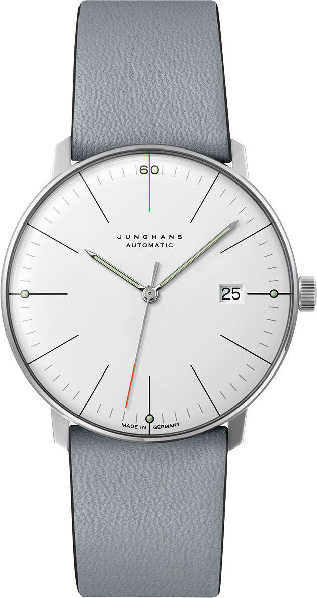 Das elegante Gehäuse aus poliertem Edelstahl hält sich bewusst zurück, um den Fokus auf das Wesentliche zu lenken – die klare Darstellung der Zeit. Das Zifferblatt in dezentem Mattweiß überzeugt mit einer fein ausgearbeiteten Minuterie und einem subtilen Farbakzent: Der Stundenstrich bei zwölf Uhr strahlt in einem lebendigen Orangeton. Dieser frische Farbimpuls findet sich auch in der Spitze des Sekundenzeigers wieder und verleiht der Uhr einen dynamischen Charakter. Komplettiert wird das Design durch ein hochwertiges graues Lederarmband mit schwarzer Schnittkante und passendem Unterleder. Im Inneren sorgt das präzise Kaliber J800.1, das durch die Bewegung seines Trägers angetrieben wird, für zuverlässige Leistung.