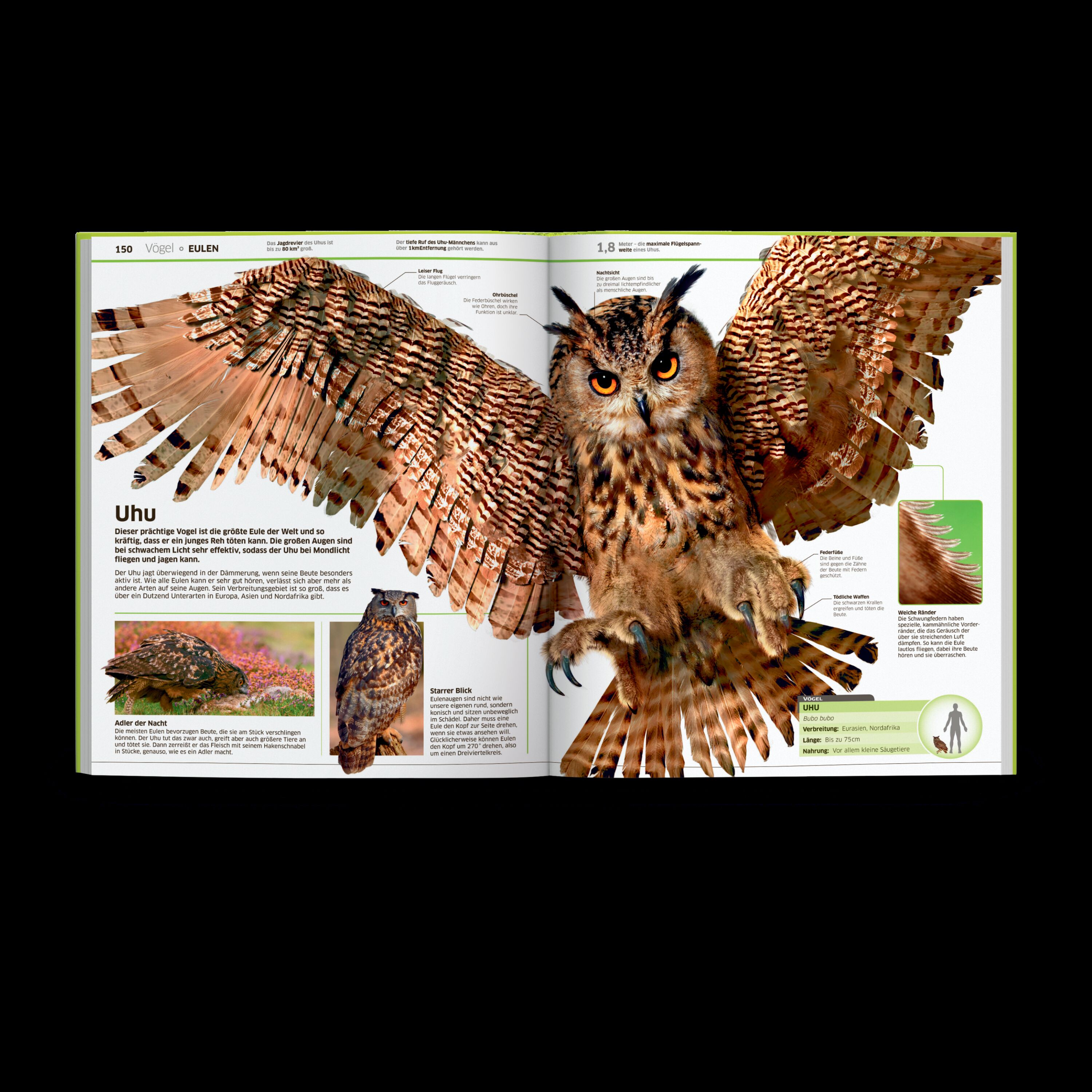Darüber hinaus bietet das Buch noch zahlreiche weitere Extras: fundiertes Zusatzwissen, zum Beispiel über Ökosysteme und Evolution, spannende ZEIT LEO-Artikel, die anschaulich für Kinder aus der aktuellen Tierforschung berichten, sowie natürlich auch ein Register und Glossar zur schnellen Orientierung.
